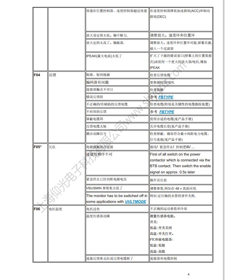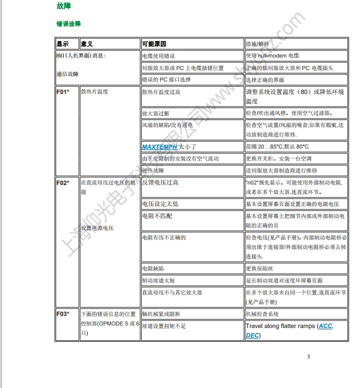 科爾摩根S62000維修,S64001,S67001,S60100,S60300,S60600,S61000,S61400,S30363,S30661,S31061,S30301,S30601,S30101維修、CR03550維修、科爾摩根伺服器常見的故障有:F02、F01、F04、F06、F09、F15、F19、F25、無顯示等;KOLLMORGEN科爾摩根伺服常見故障現(xiàn)象:上電報過電流故障、過電壓、地短路故障、欠電壓、電壓缺相、外部報警、散熱片過熱、外部報警、變頻器內(nèi)過熱、制動電阻過熱、變頻器過載、DC熔斷器斷路、存儲器異常、鍵盤面板通信異常。科爾摩根伺服驅(qū)動器故障顯示警告顯示及解決辦法一覽表: