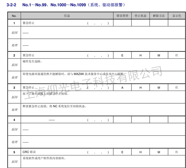 馬扎克數控系統維修報警代碼如下: