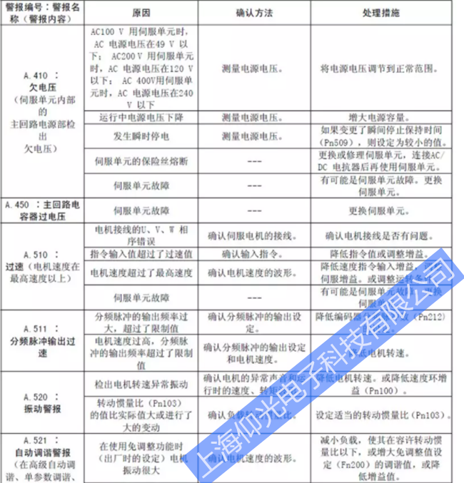 如果在不接通主回路電源的狀態下,再次接通伺服單元的控制電源。仍然發生警報時,有可能是伺服驅動器本身故障,需要維修驅動器或更換驅動器。