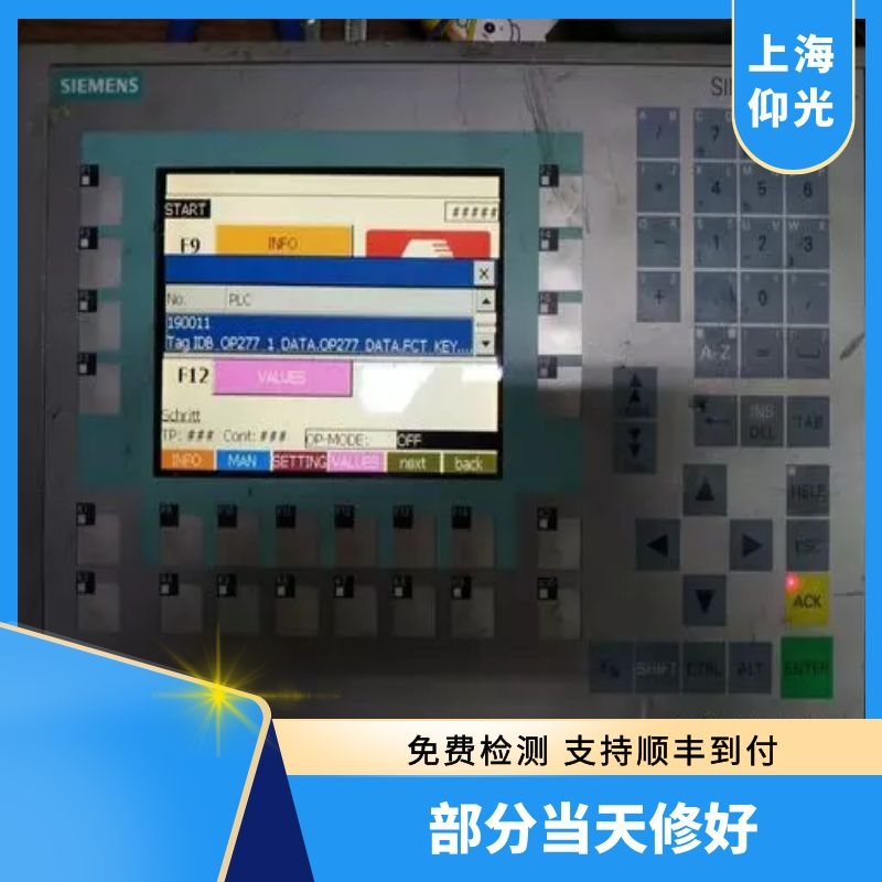 上海仰光針對西門子觸摸屏DP口燒壞維修,西門子觸摸屏MP通訊口燒壞維修,西門子觸摸屏USB通訊口燒壞維修,部分當天可以修好測試好發出,西門子(觸摸屏)工控機維修故障:維修故障包括:按鍵損壞,電源板故障、高壓板故障,液晶故障、主板 壞、上電黑屏、 花屏、暗屏、觸摸失靈,不能正常開機、觸摸問題、按鍵問題、屏幕顯示問題(屏碎、花屏、白屏、黑屏 等)、通訊問題(觸摸無反應、觸摸反應慢等)、電源故障、主板問題、系統問題等 工控機無法安裝操作系統;工控機按下開 關,可以看到指示燈亮,但屏幕無顯示;工控機開機屏幕出現英文或數字報錯,無法進入系統;工控機不識別光驅、硬盤、軟 驅、串口、并口、網卡口等;工控機按下開關,沒有任何反應(無法開機);工控機經常死機、掉電或自動重啟;工控機密碼遺 忘,無法進入系統;工控機電池無法充電;
