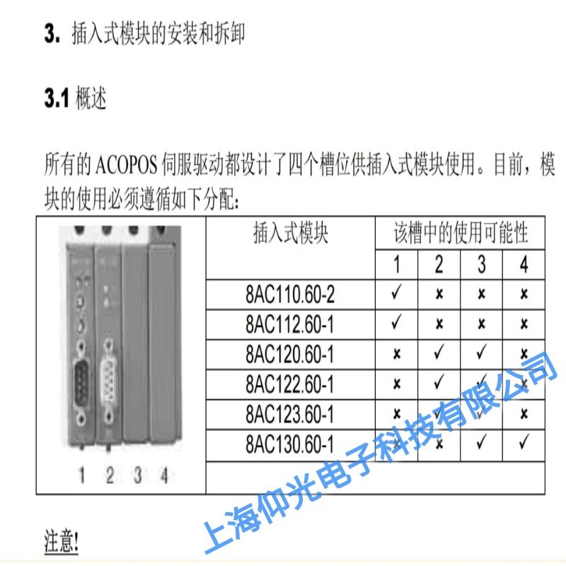 貝加萊ACOPOS伺服驅(qū)動器插入式模塊安裝: