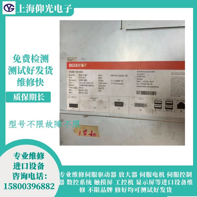 倍福工控機維修常見故障:觸摸屏進不了界面,無顯示,亮度看不清楚,黑屏,花屏,白屏,液晶屏顯示豎